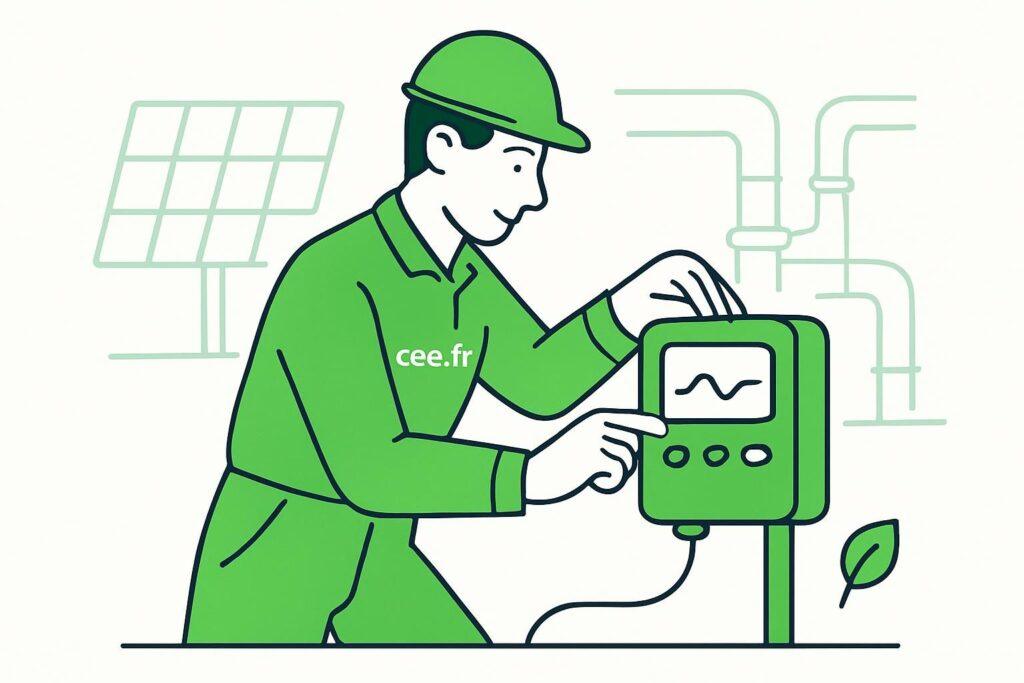 Certaines opérations sur postes de chauffage, ventilation ou traitement d’air exigent des mesures pré- et post‑travaux afin de prouver l’amélioration. La conformité aux normes de filtration ou de qualité d’air peut être contrôlée via des campagnes de mesure documentées : voir par exemple les référentiels sur filtres et capteurs : pro.cee.fr/normes-filtration-f7-f9-h13/ et pro.cee.fr/qualite-air-capteur-co2/.