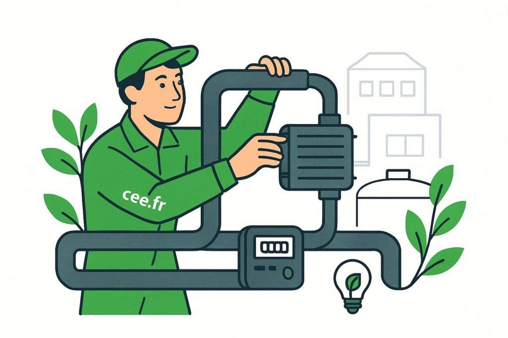 Les Certificats d’Économies d’Énergie (CEE) peuvent financer une partie des travaux liés à la récupération chaleur eaux usées lorsque les opérations respectent les fiches standardisées en vigueur et démontrent des économies mesurables. Le montant dépend du type d’opération, du niveau d’économie énergétique (kWh cumac) et des coefficients applicables.