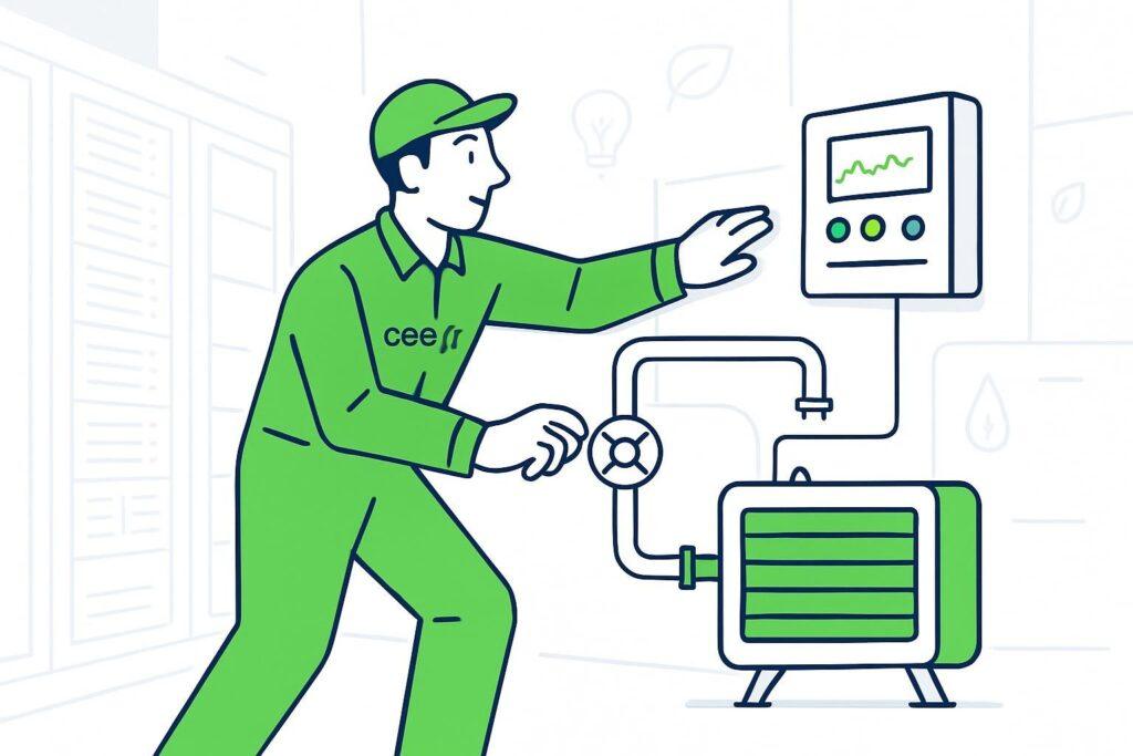 Exceptions et risques : l’introduction du liquide de refroidissement nécessite une gestion du fluide (qualité, filtration) et des procédures d’urgence. Un mauvais dimensionnement peut provoquer des pertes de disponibilité. Pour éviter cela, la mise en service CVC et les contrôles sont indispensables : mise en service CVC. Insight final : l’éligibilité passe par des preuves chiffrées et une trajectoire de maintenance claire.