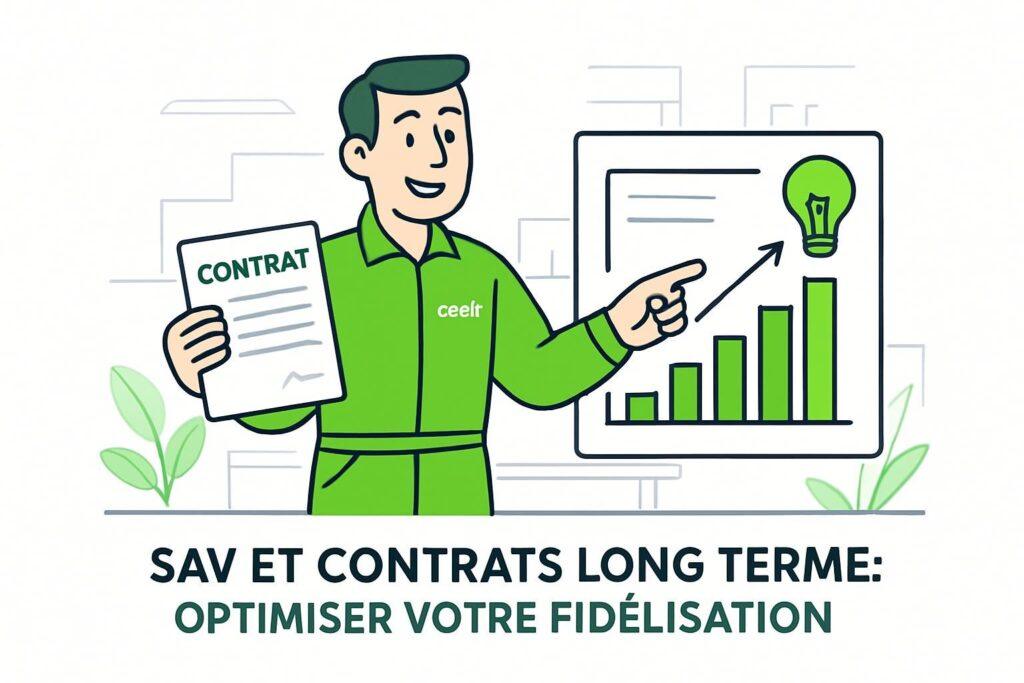 Le SAV et contrats long terme n’est pas une charge mais un levier stratégique pour la fidélisation. En structurant correctement vos offres de service après-vente, vous augmentez la satisfaction client et réduisez la retention négative. Atelier Vert a mis en place, en 2025, trois niveaux de contrat : standard, premium et performance. Le premium inclut une intervention en 48h et un reporting trimestriel ; la performance complète par une assistance dédiée 24/7 et un bilan annuel d’efficacité.